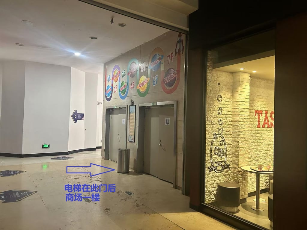 请在此乘电梯至商场五楼